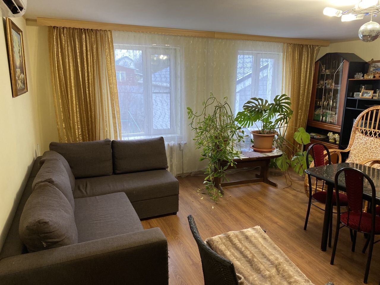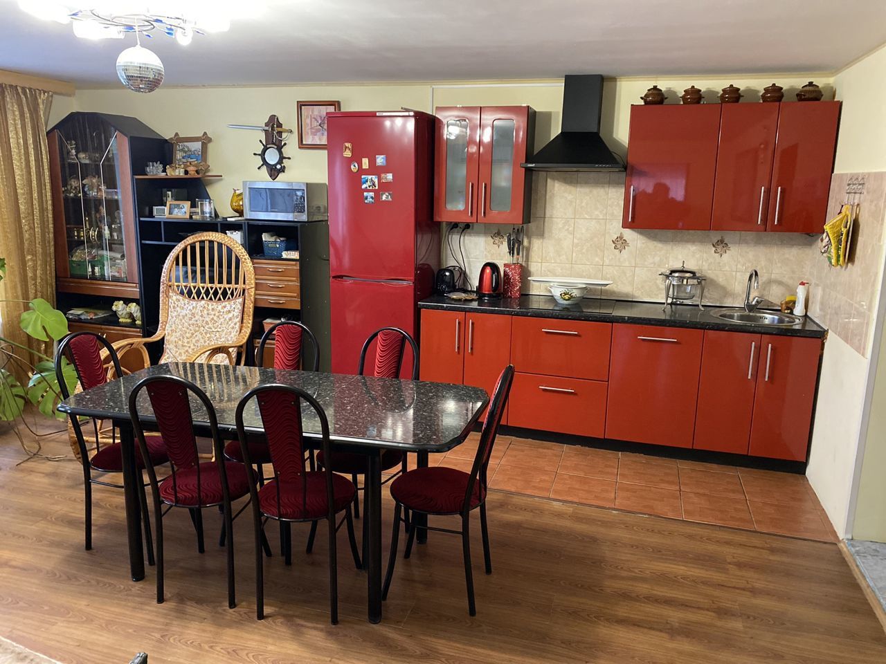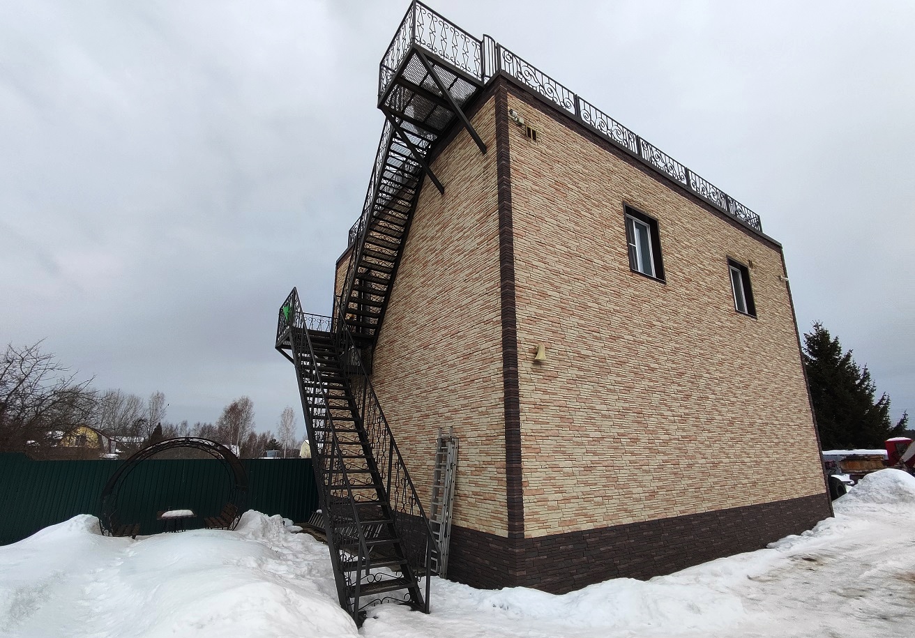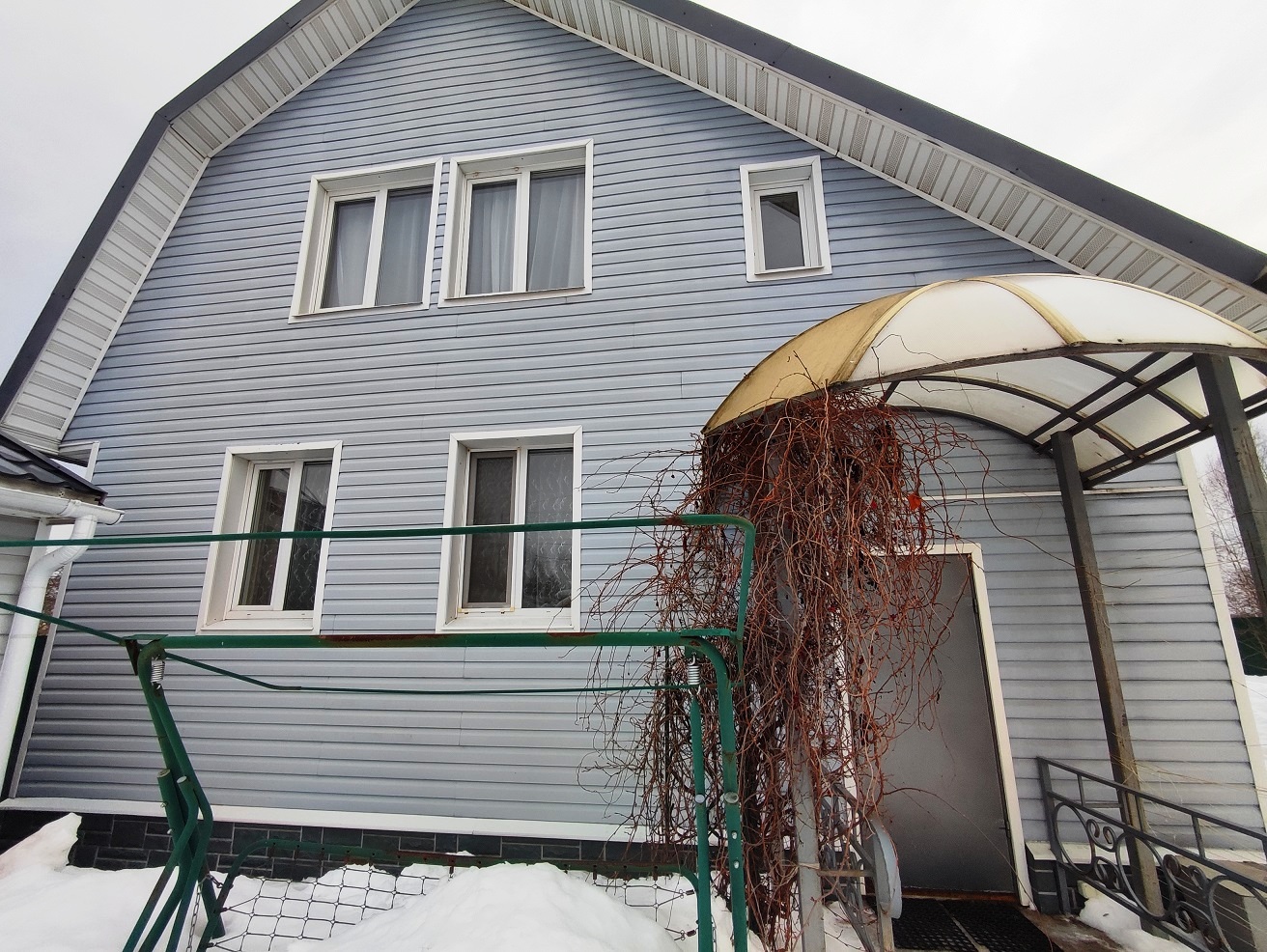 2) Двухэтажный гостевой ДОМ площадью 170 м2. Год постройки 1996. Кровля металлочерепица, ленточный фундамент с цокольным этажом, пол залит бетоном, материал стен рубленое бревно с утеплением, снаружи обшит сайдингом, внутри гипсокартон, ламинат, установлены стеклопакеты. На 1 этаже: гостиная-кухня, зал, спальня, санузел. На 2 этаже: две спальни, кладовка, санузел (душ и туалет). Кондиционер (сплит-система), стиральная машина. Центральное отопление от газового котла в бойлерной по теплотрассе.