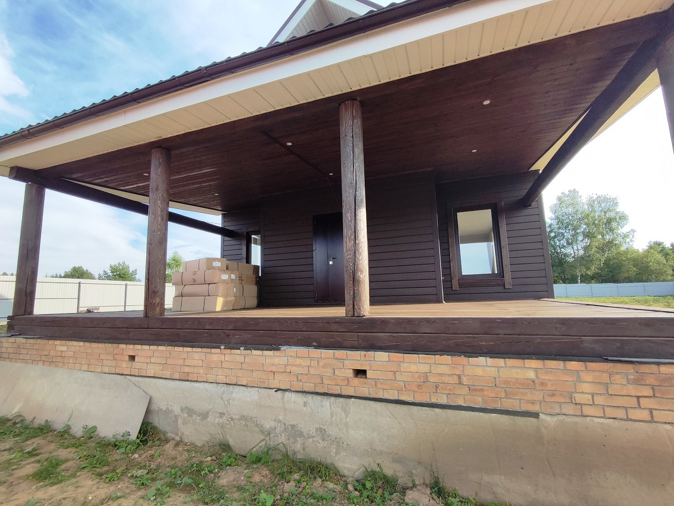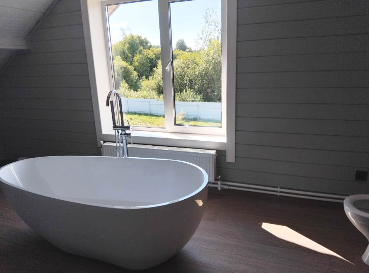 Дом предназначен для круглогодичного проживания. Новый, год постройки 2024. Сделана высококачественная отделка под ключ (евроремонт), установлена сантехника и проведены все инженерные коммуникации. Осталось только поставить мебель и жить! Ленточный монолитный железобетонный фундамент с высоким цоколем. Материал стен брус. Обшит сайдингом с утеплением 150 мм. Кровля металлочерепица.