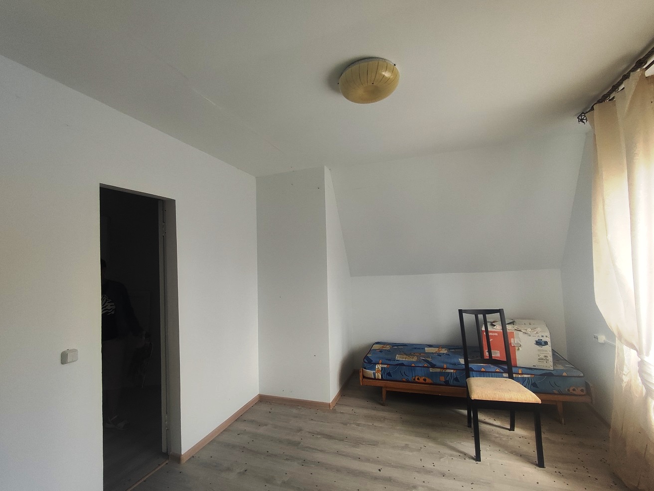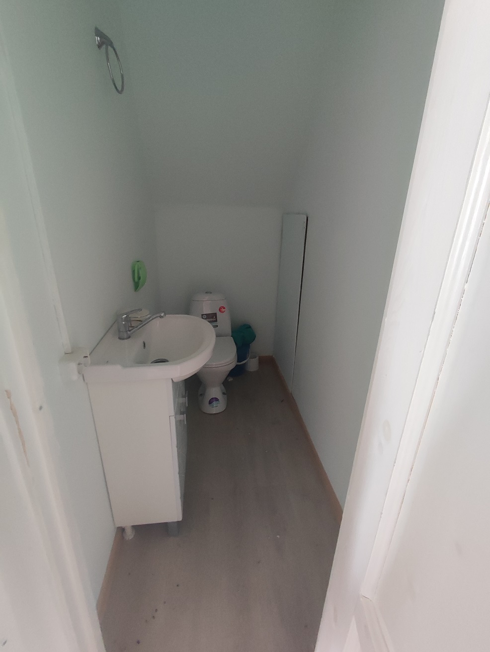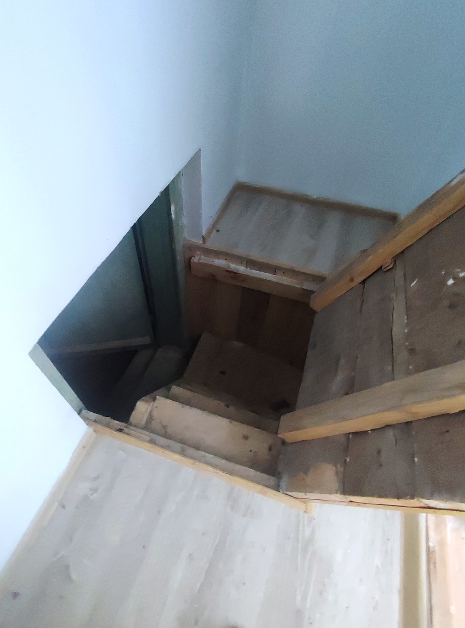 Общая планировка 1 этажа: подвальное помещение, кухня, две больших просторных комнаты, спальня, прихожая, два раздельных санузла.