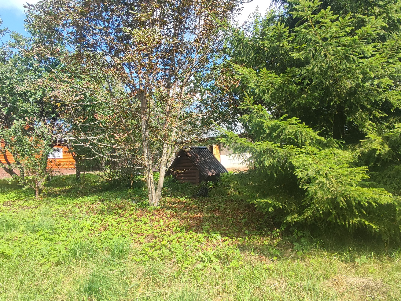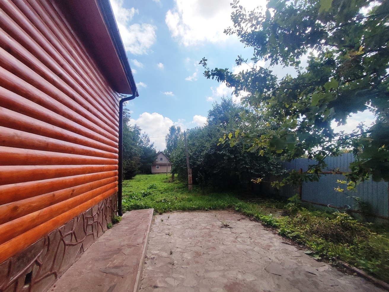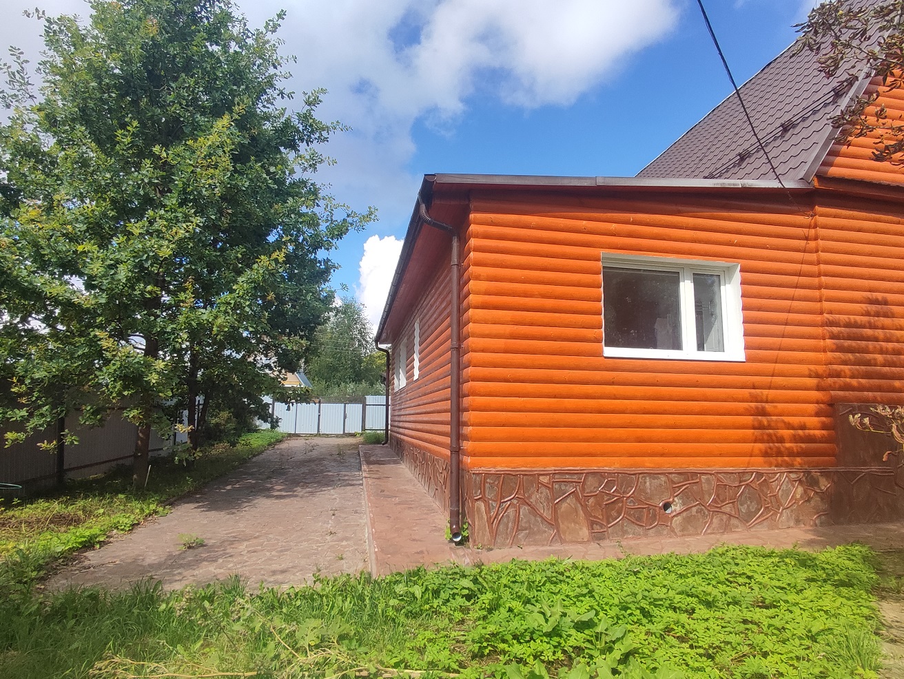 Участок площадью 26 соток + 6 соток (640 м2) в аренде на 49 лет до 2060 года. Огорожен забором из профлиста, двое въездных ворот. Есть плодовый сад, посажено много яблонь и декоративных хвойных растений, въезд и территория вокруг дома выложены брусчаткой и плиткой.