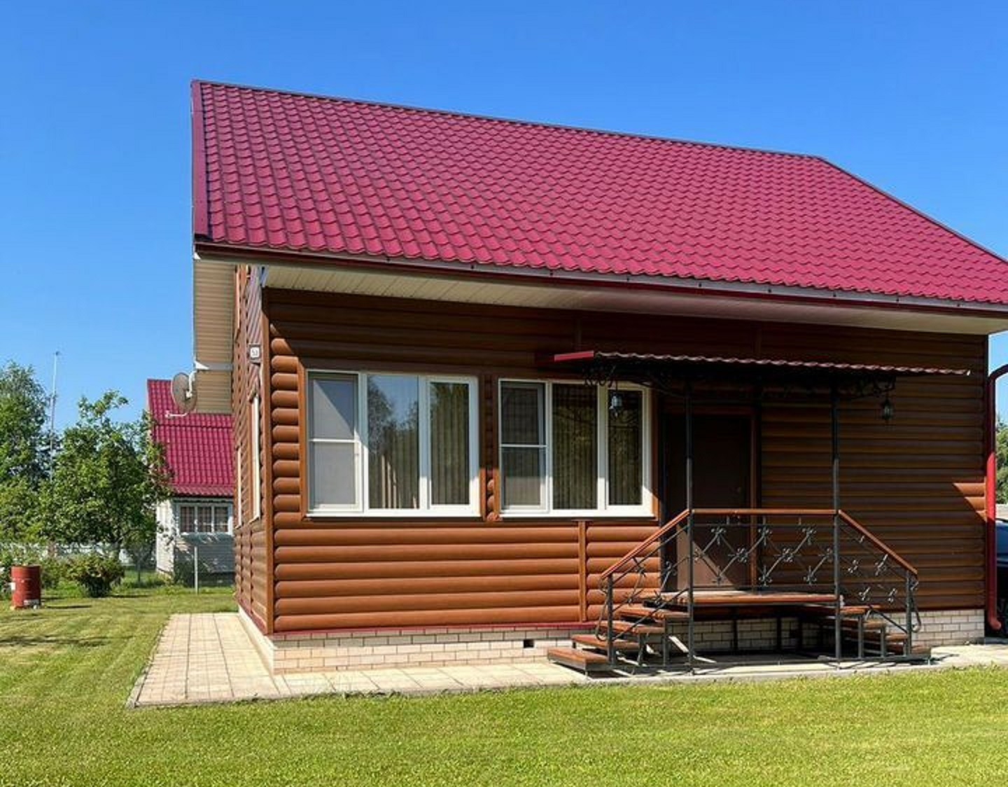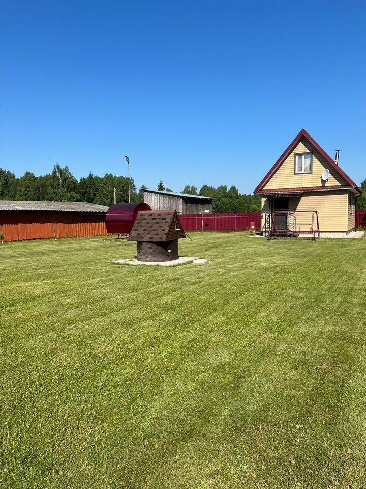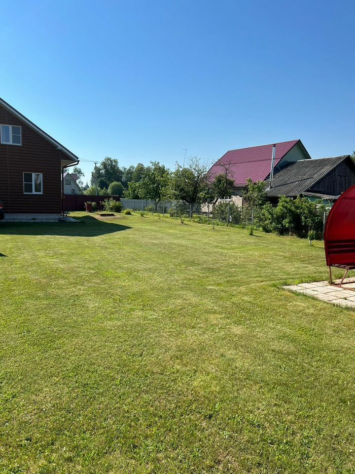 Дом расположен на земельном участке 15 соток (1500 м2). Территория огорожена забором из профлиста. Участок освоен: газон, растут плодовые деревья и кустарники.