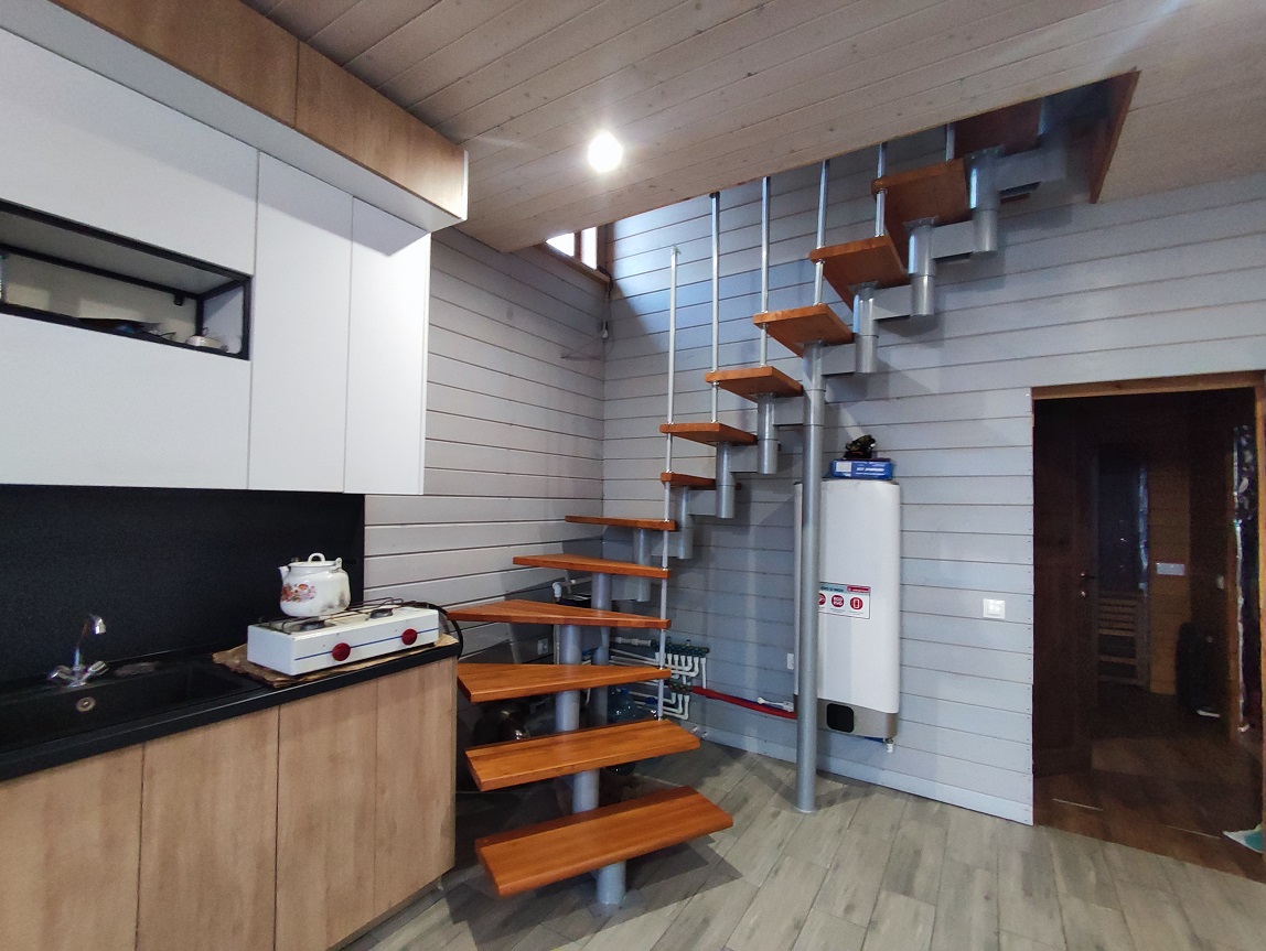 На 1 этаже: прихожая, зал, ванная комната с душевой, кухня-гостиная.