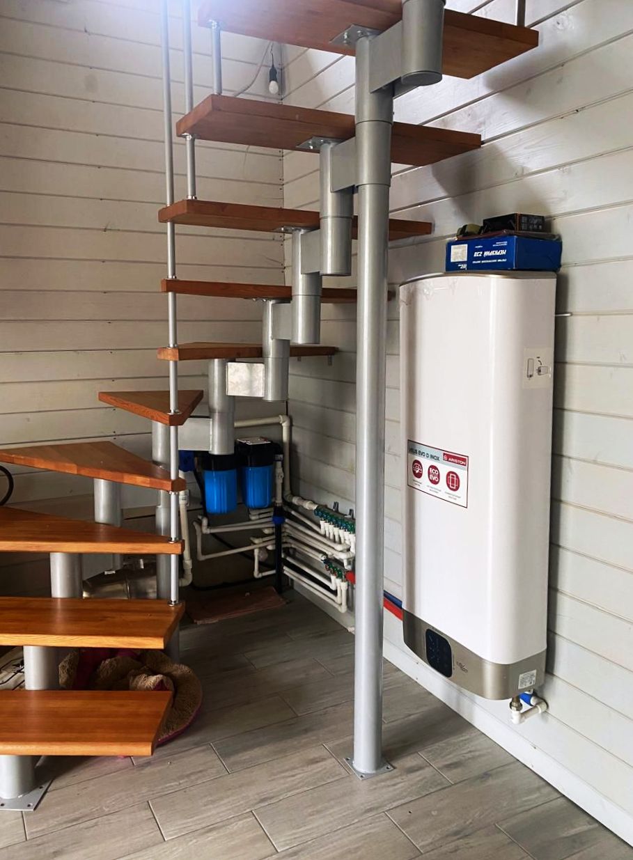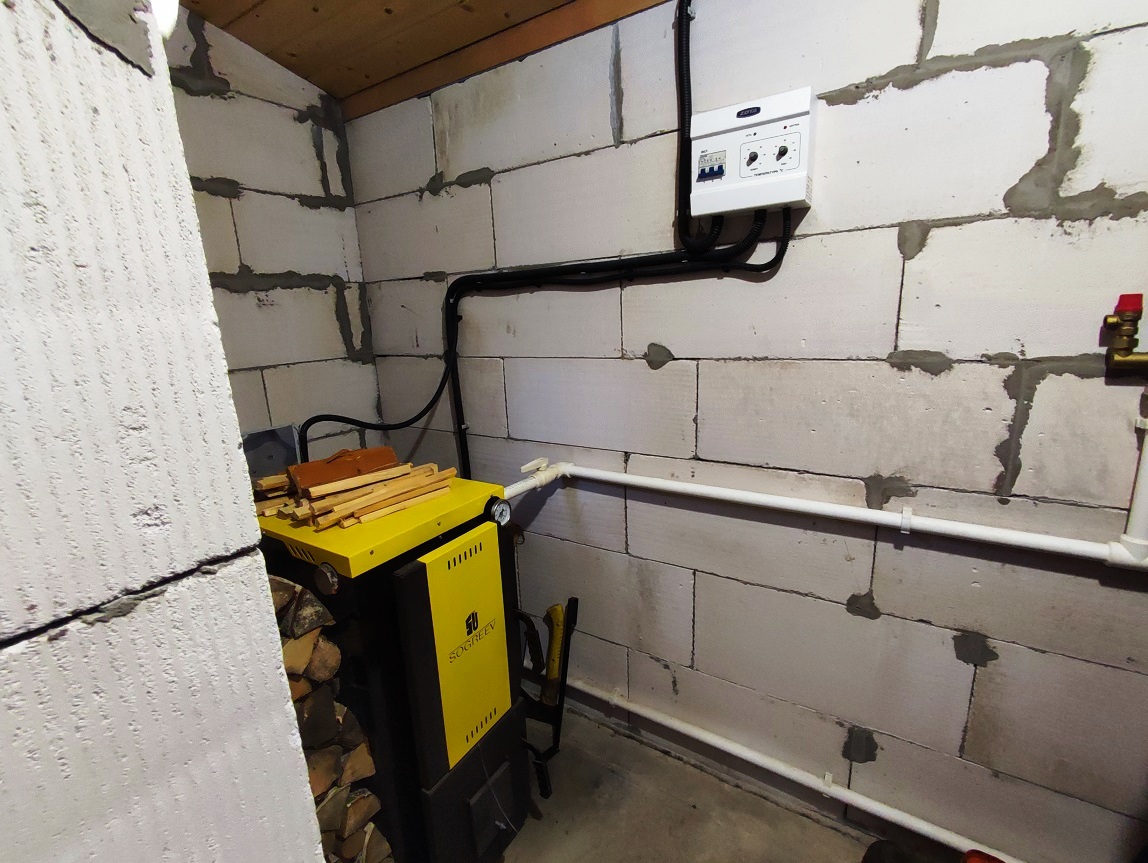 Коммуникации: электричество 15 кВт, твердотопливный котел Sogreev с возможностью подключения к электросети, теплый пол на 1 этаже от системы отопления, водоснабжение от колодца (утепленный водопровод), канализация септик. Вода в уличный летний бассейн закачивается из волжского ручья.