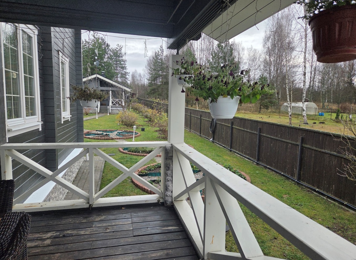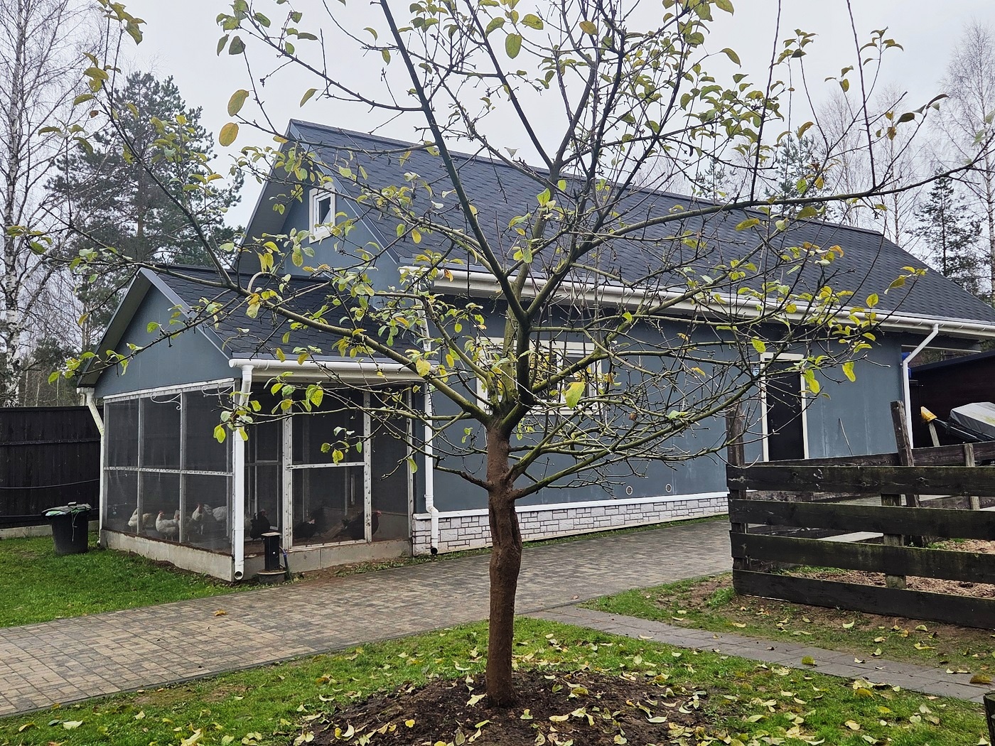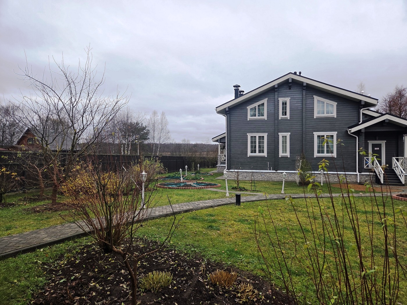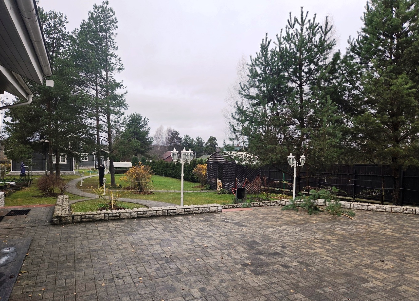 5. Домовладение расположено на земельном участке 50 соток (0,5 Га). Территория огорожена. Забор металлический из профлиста по всему периметру на бетонном фундаменте из армированной ленты. Дорожки и площади вокруг домов выложены брусчаткой. Внешние светильники и освещение. Ландшафтный дизайн. Декоративные растения, клумбы, цветы, сосны, туи. Разнообразные садовые деревья, яблони, сортовая клубника, смородина, крыжовник. Дренажная система по периметру. Автополив на ТЕПЛИЦУ с отоплением и садовые насаждения.