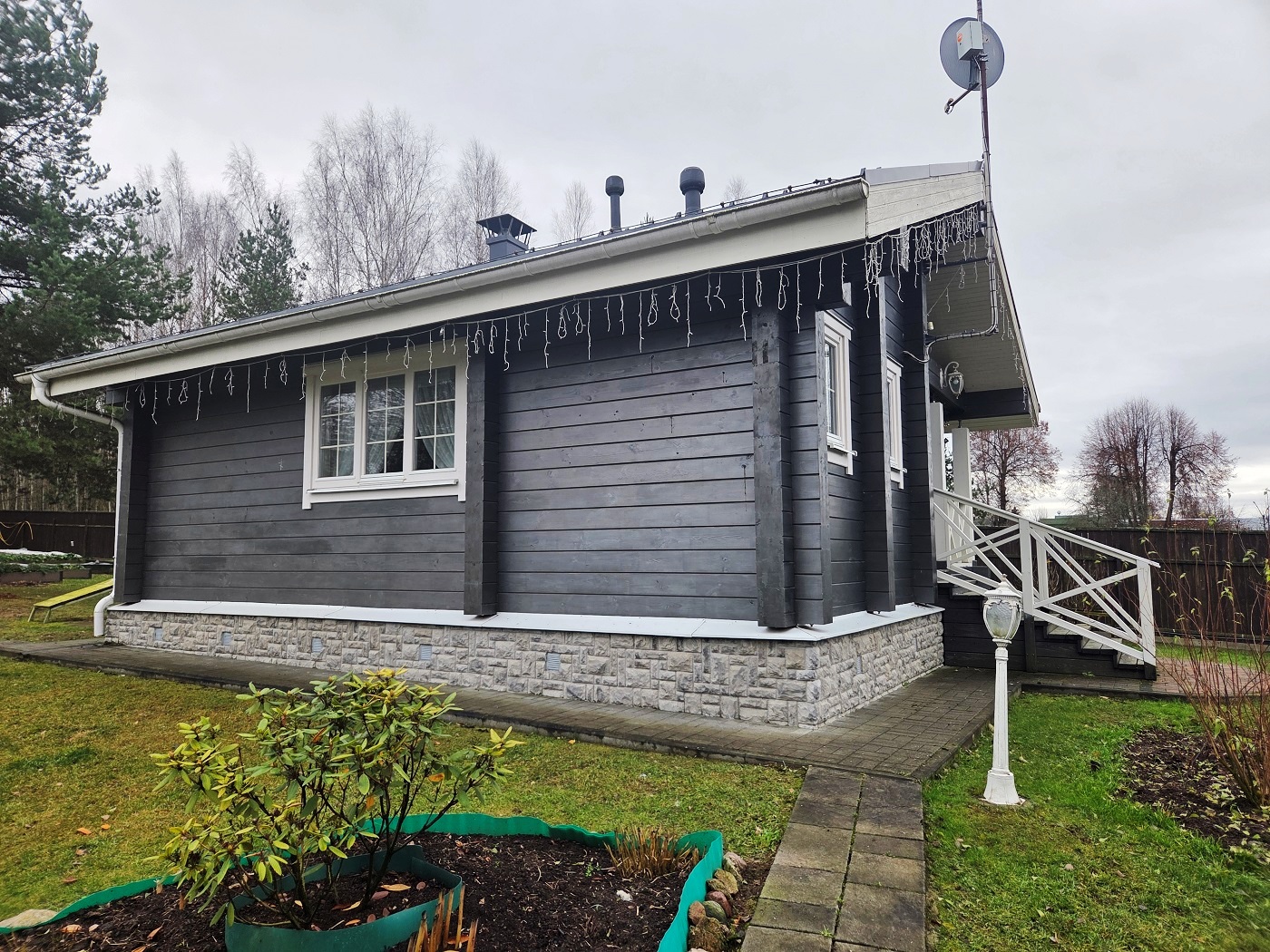 2. Банный ДОМ 49,5 м2 (7х8). Планировка: открытая веранда, жилая комната, предбанник, парилка, закрытая каменка, санузел.