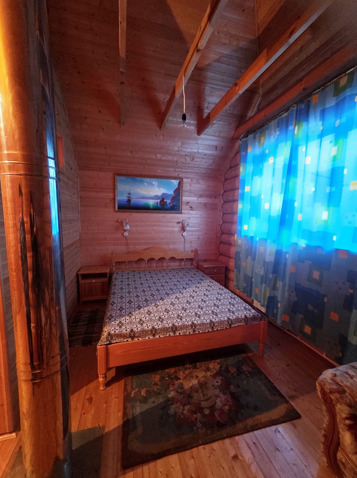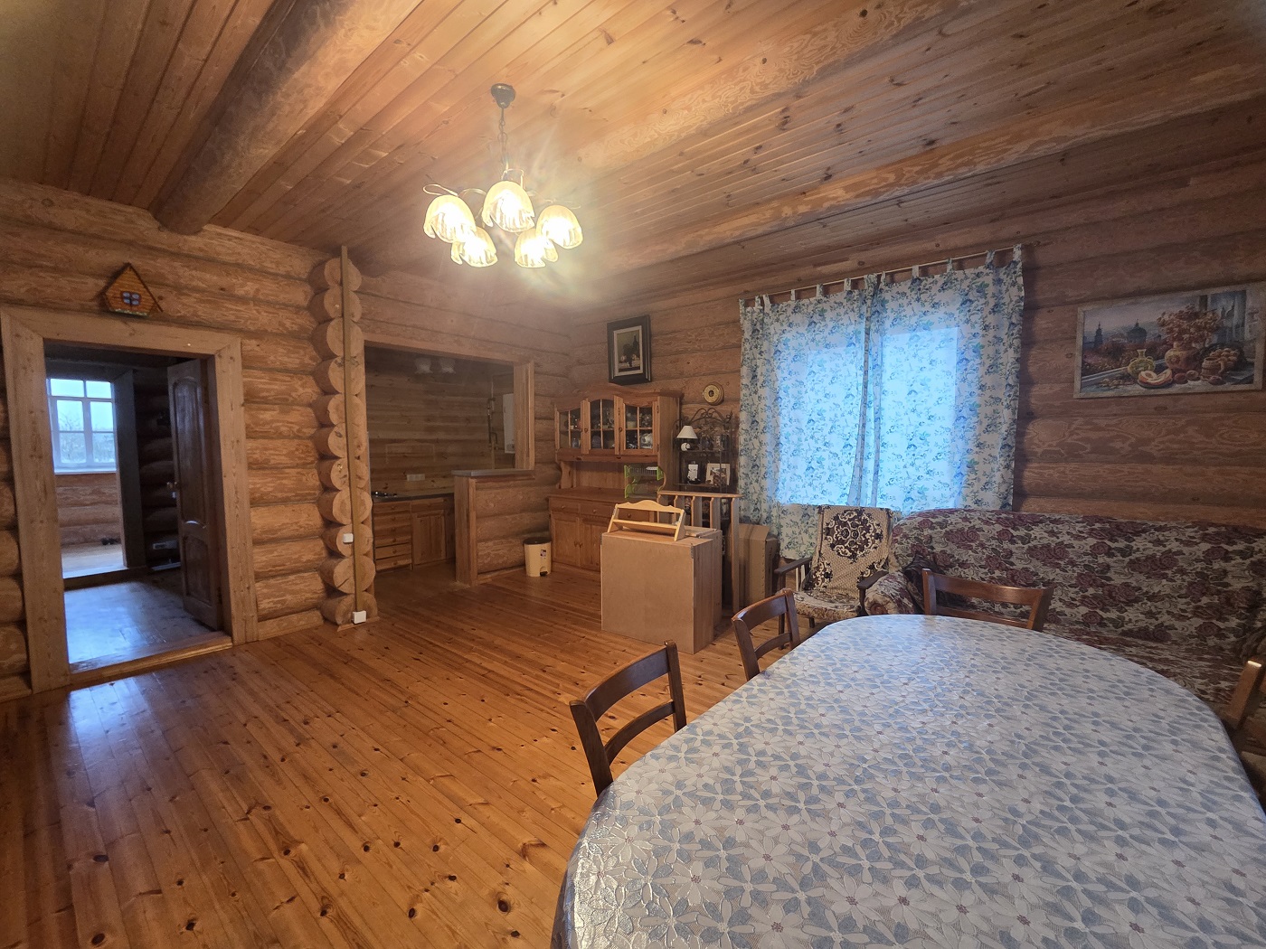 В коттеджном поселке бизнес класса со своим озером, внутренним лесом и выходом на реку продается обжитой благоустроенный загородный 2-этажный дом площадью 110 м2. В отличном состоянии. Идеально подходит для комфортного круглогодичного отдыха и проживания. Меблирован, с обстановкой и встроенной техникой. Год постройки 2010. Монолитный фундамент с отмосткой. Сруб из толстого соснового бревна ручной рубки диаметром 32-34 см. Кровля металлочерепица с водосточной системой. Окна стеклопакеты. Планировка: застекленная терраса, прихожая, кухня, большой холл, санузел, две спальни в мансардном этаже с залом.