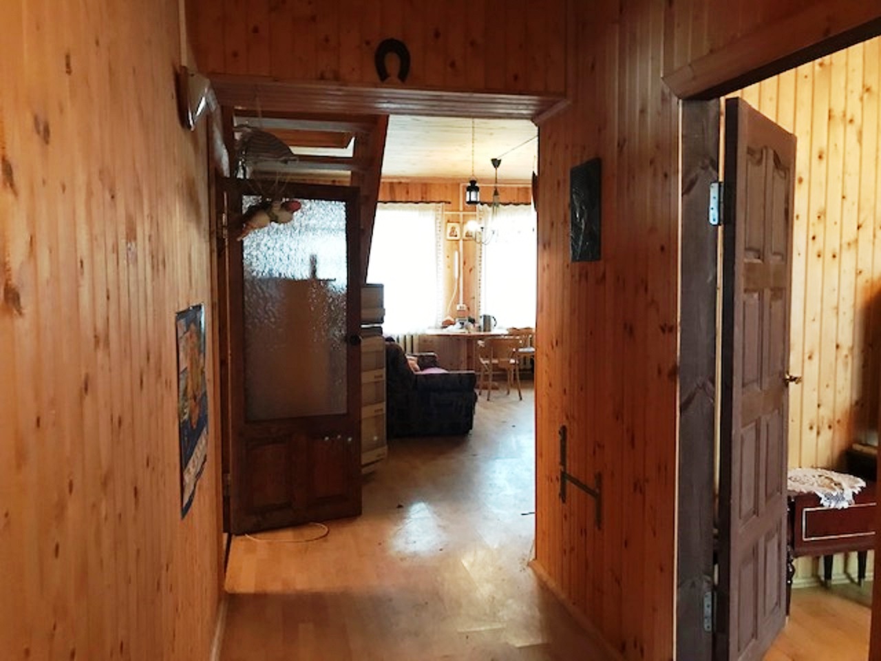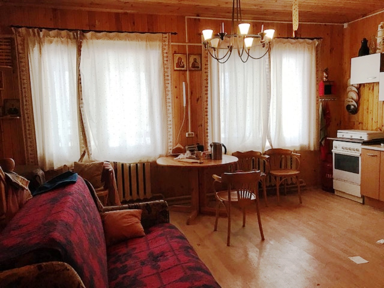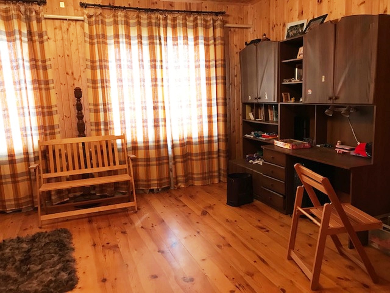 Крепкий дом с пристройками общей площадью 216 кв.м. Основное строение 12х12 метров, пристройка 6х12 метров и открытая веранда. Фундамент монолитный, высокий цоколь с облицовкой, материал стен лафет 45 см, кровля шиферная. Снаружи отделка сайдингом, внутри вагонкой. Пол и потолок с утеплением. Готов для круглогодичного проживания.