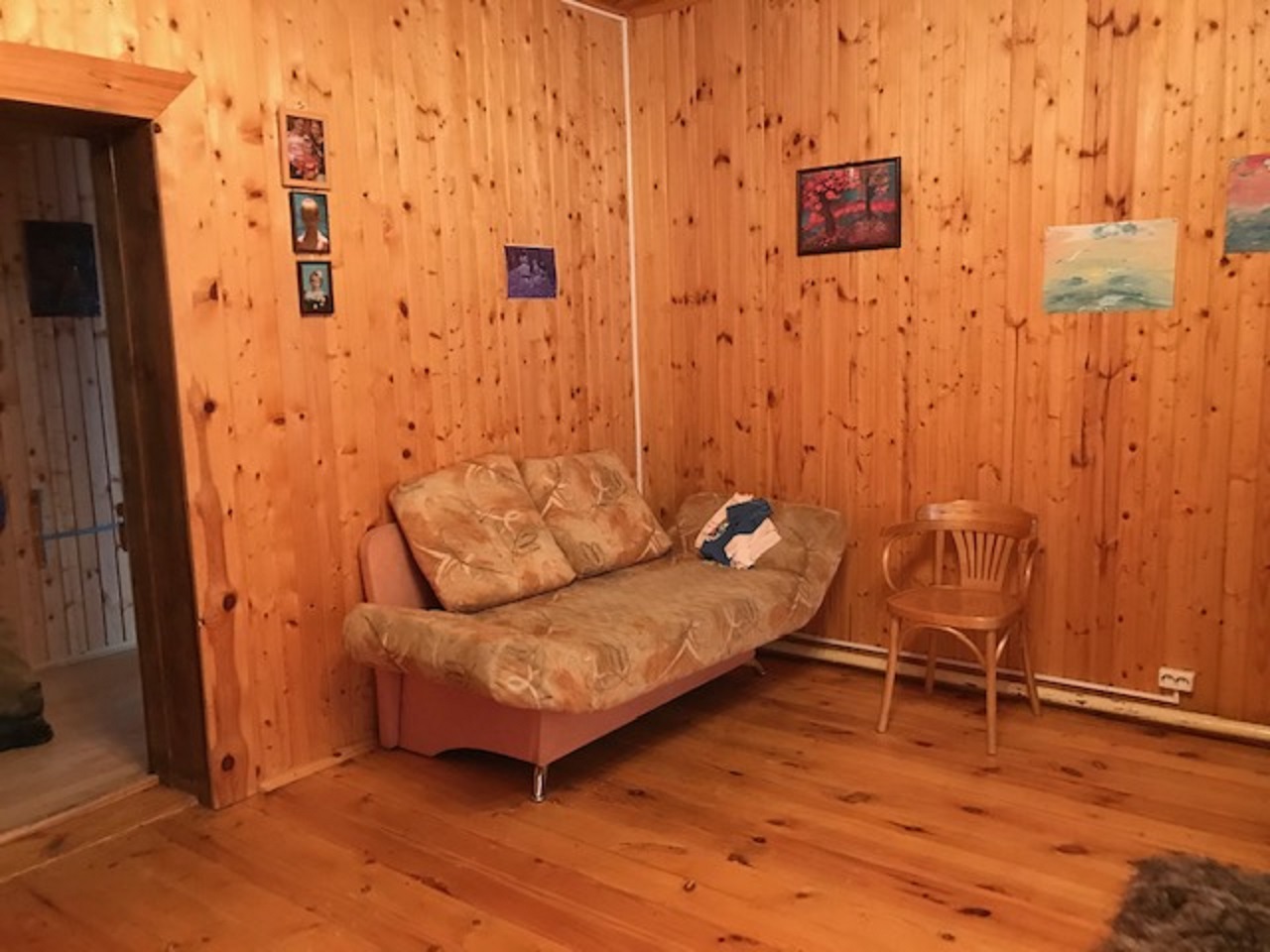 Планировка: большая кухня, просторные комнаты, две спальни, санузел, мансардное помещение. Сауна (баня) внутри дома: парилка и душевая.