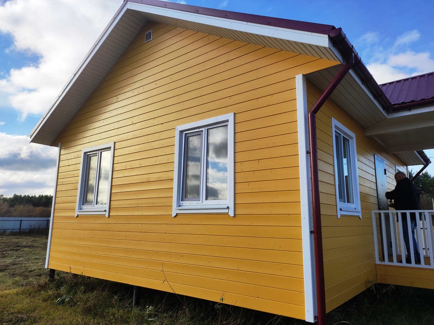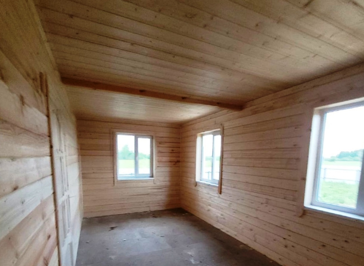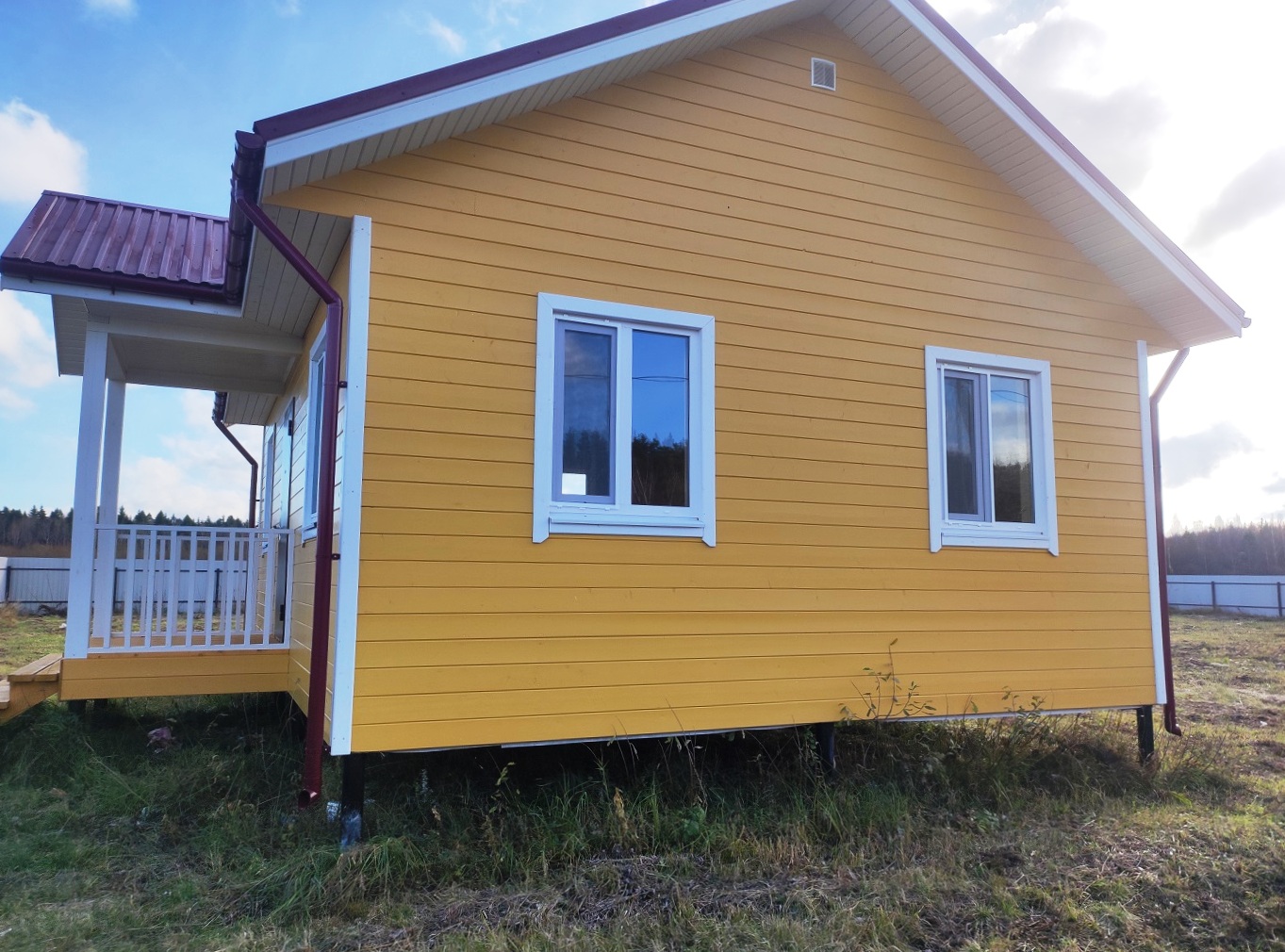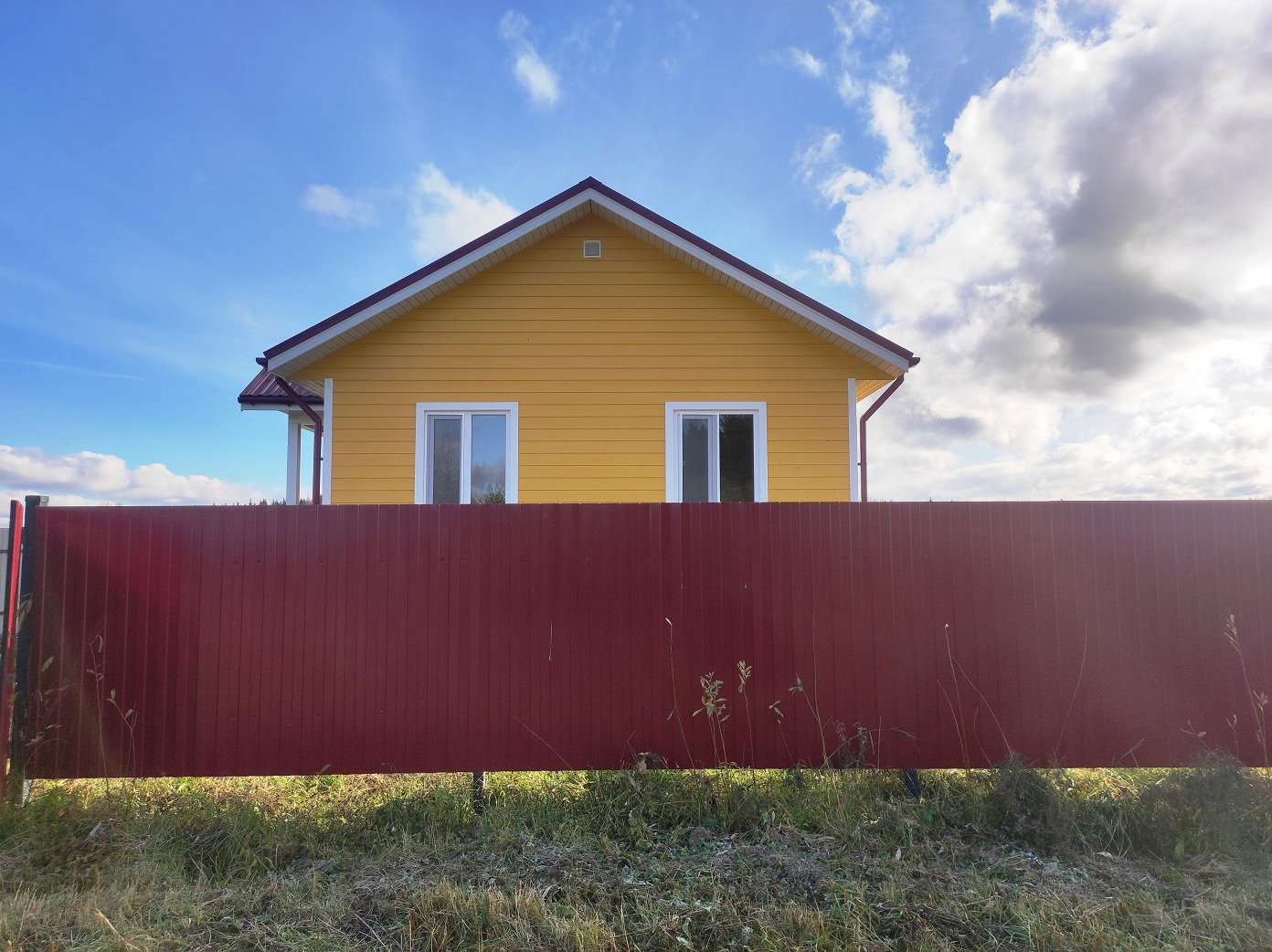 Рядом с Калязиным ПРОДАЕТСЯ новый современный каркасный загородный дом для круглогодичного проживания общей площадью 48 м2. Фундамент свайно-винтовой. Основание из бруса 140х140 длиной 6 на 8 метров, обшивка стен сделана строганной калиброванной доской камерной сушки сечением 40х145 под имитацию бруса. Пол и потолок утеплены минеральной ватой Knauf с использованием ветрозащитной мембраны и пароизоляции марки Ондутисс А и Б. В стены заложен плитовой утеплитель Роквел толщиной 150 мм. Кровля из профлиста. Установлены пластиковые стеклопакеты Proplex с поворотно-откидными створками. Входная дверь металлическая, межкомнатные из массива сосны. Забор металлический из профлиста с воротами и калиткой под цвет крыши.