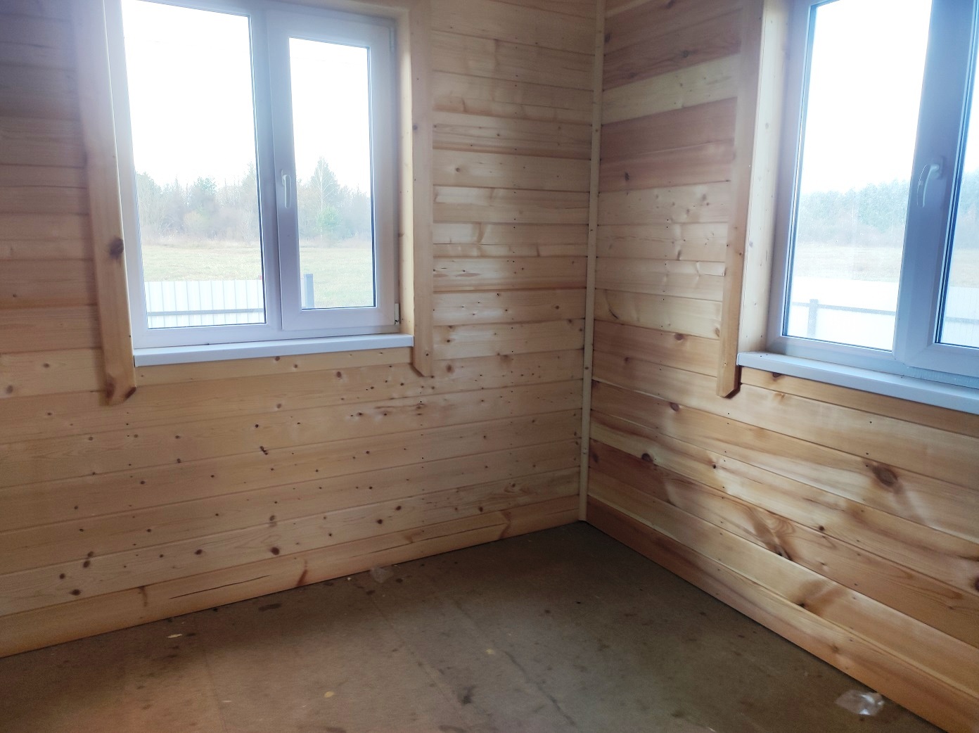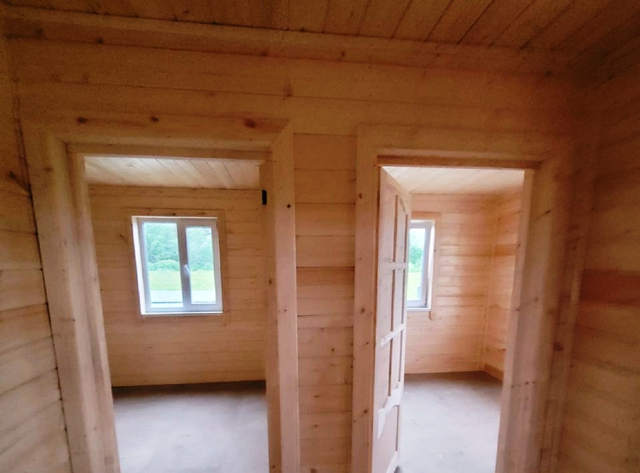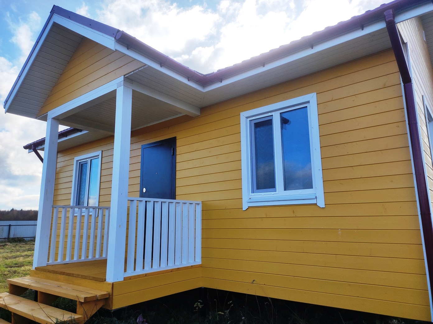 Рядом с Калязиным ПРОДАЕТСЯ новый современный каркасный загородный дом для круглогодичного проживания общей площадью 48 м2. Фундамент свайно-винтовой. Основание из бруса 140х140 длиной 6 на 8 метров, обшивка стен сделана строганной калиброванной доской камерной сушки сечением 40х145 под имитацию бруса. Пол и потолок утеплены минеральной ватой Knauf с использованием ветрозащитной мембраны и пароизоляции марки Ондутисс А и Б. В стены заложен плитовой утеплитель Роквел толщиной 150 мм. Кровля из профлиста. Установлены пластиковые стеклопакеты Proplex с поворотно-откидными створками. Входная дверь металлическая, межкомнатные из массива сосны. Забор металлический из профлиста с воротами и калиткой под цвет крыши.