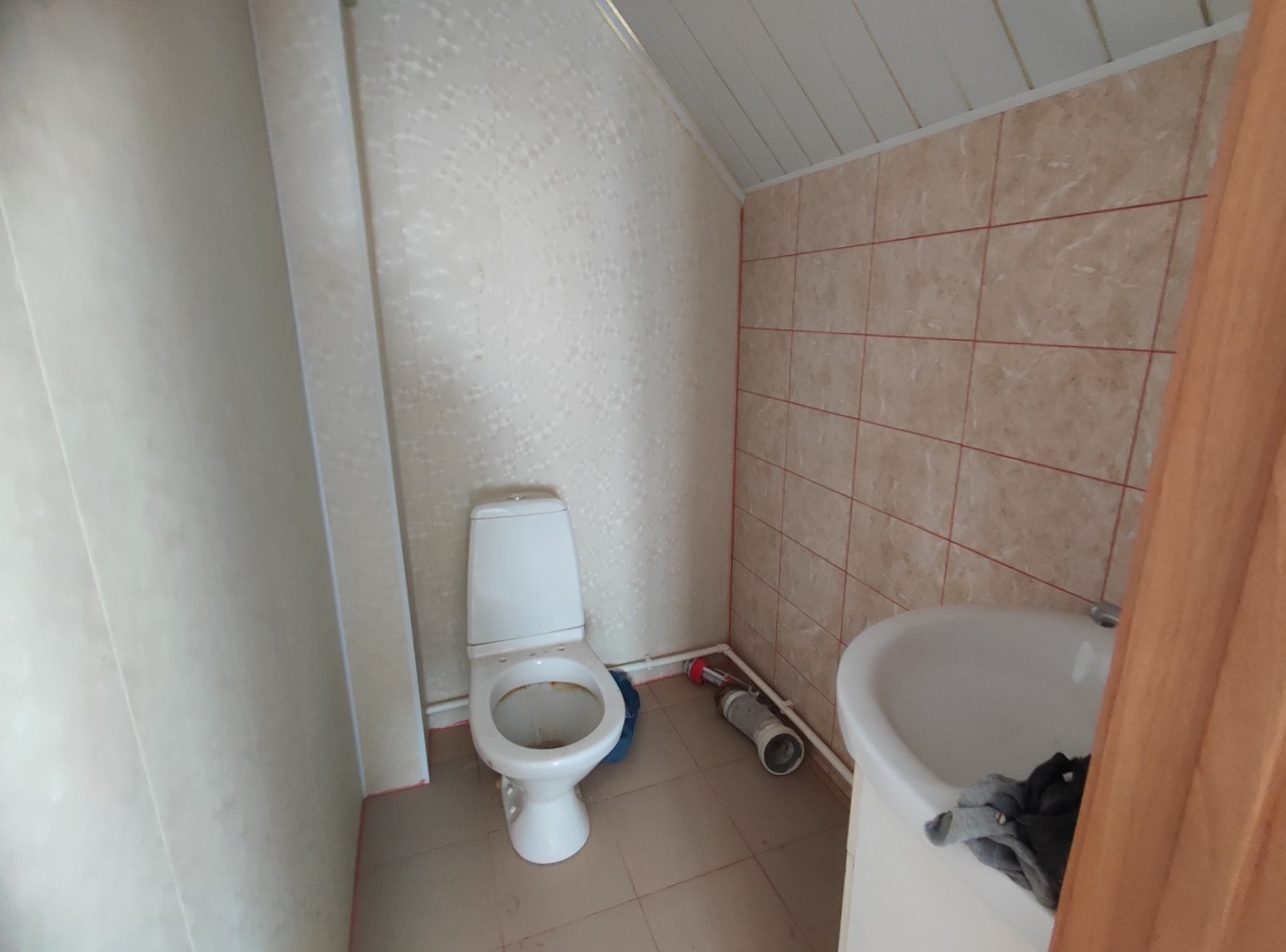 Есть отдельностоящая постройка под хозинвентарь с открытой верандой.