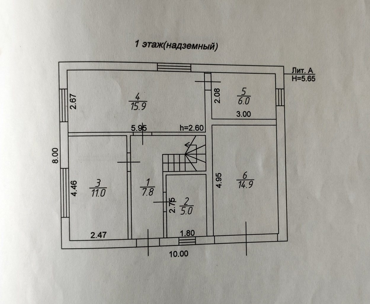 Экспликация 1 этажа: коридор 7,8 м2; совмещенный санузел с душевой кабиной 5м2; жилая комната 11 м2; кухня-гостиная 16 м2; котельная 6 м2; встроенный гараж 15 м2. Высота потолков 2,6 м, в гараже 3 м.