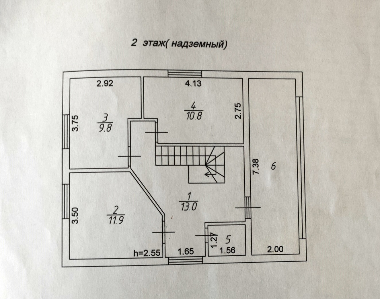 Экспликация 2 этажа: коридор 13 м2; три жилых комнаты 12,10 и 11 м2; санузел 2 м2. Высота потолков 2,55 м.