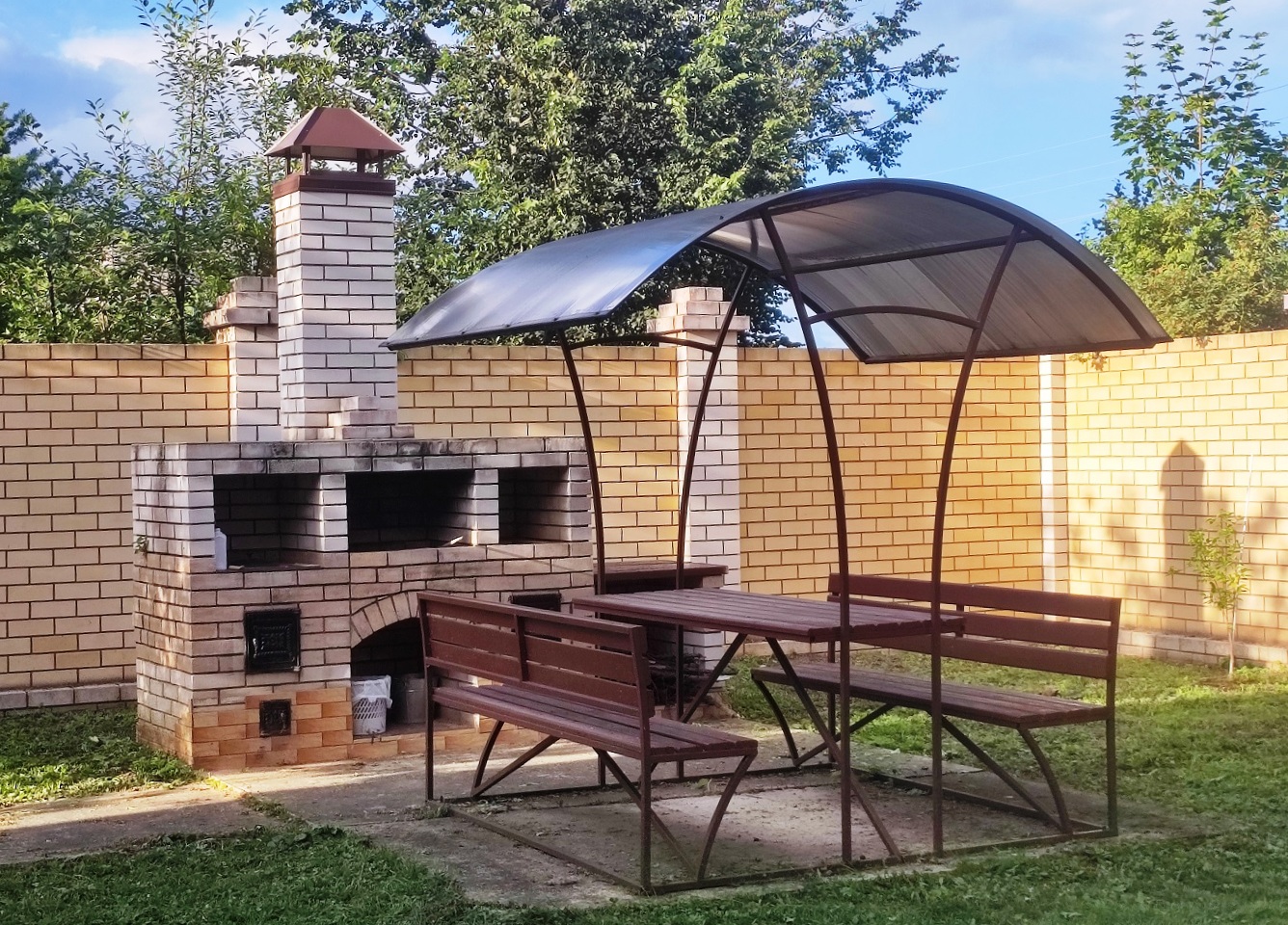 - БЕСЕДКА для летнего отдыха с кирпичным мангалом (барбекю).