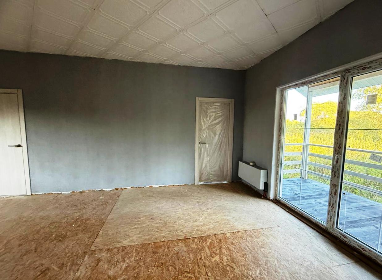 1 этаж общей площадью 89 м2 с высотой потолков 3 метра. Планировка: коридор с окном, кухня-гостиная 40 м2 с большими окнами и выходом на террасу, три полноценных больших спальни 14, 14 и 11 м2 с панорамными окнами и выходом на террасу и один санузел, в котором также установлено окно.