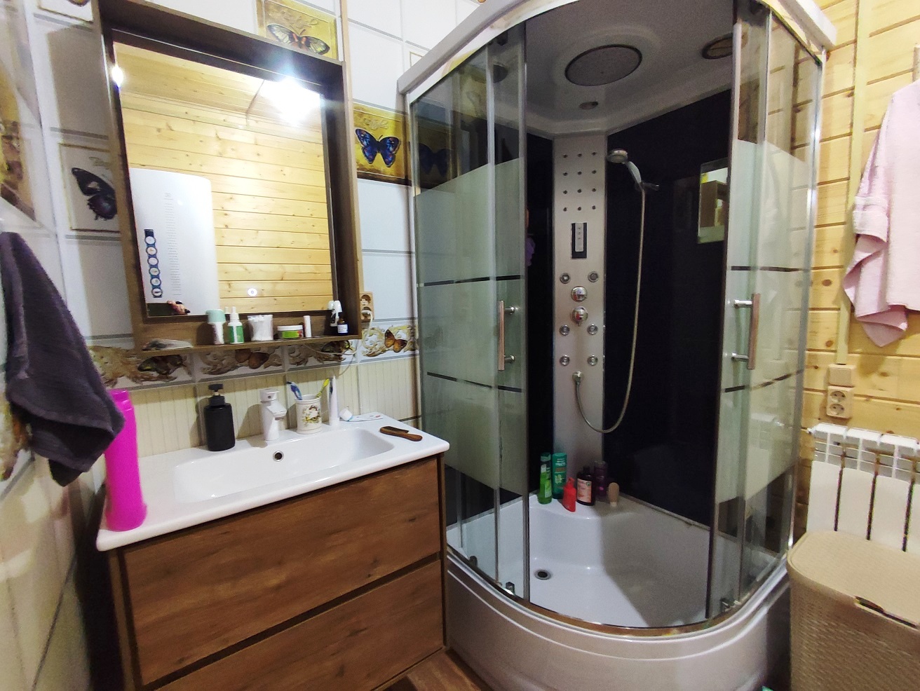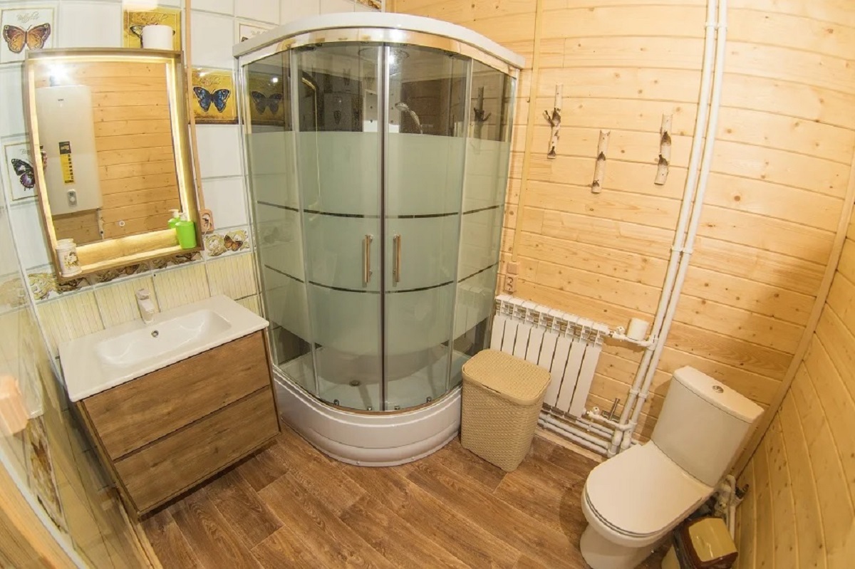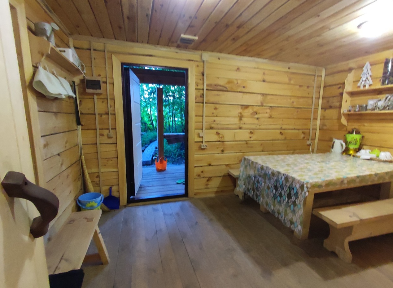 2. Новая (2020 г.п.) баня из бруса 200х200 площадью 27 м2 (6х4,5) с большой парилкой рядом с берегом реки.