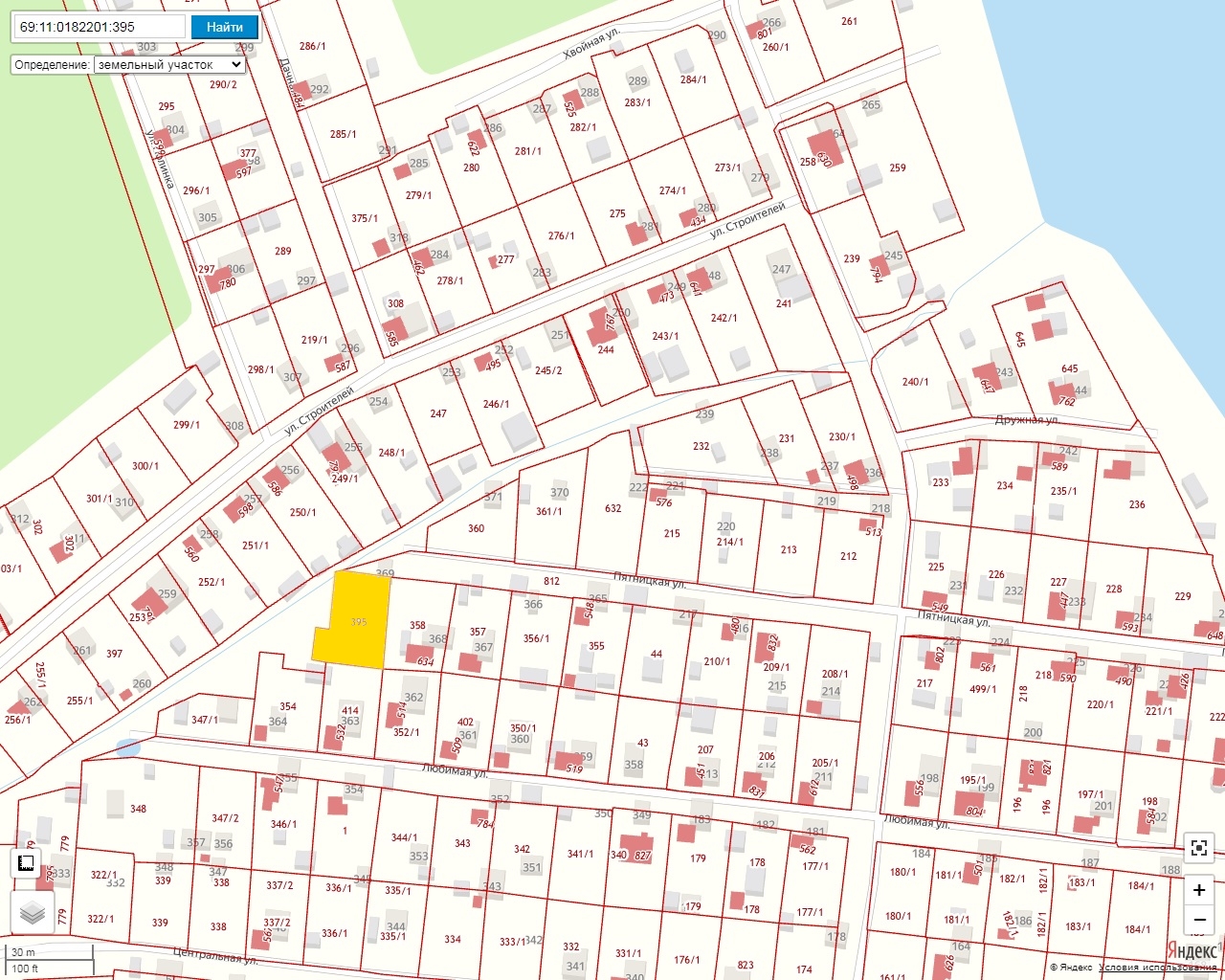 Основной участок для дома площадью 6,5 соток (649 м2). Кадастровый: 69:11:0182201:395